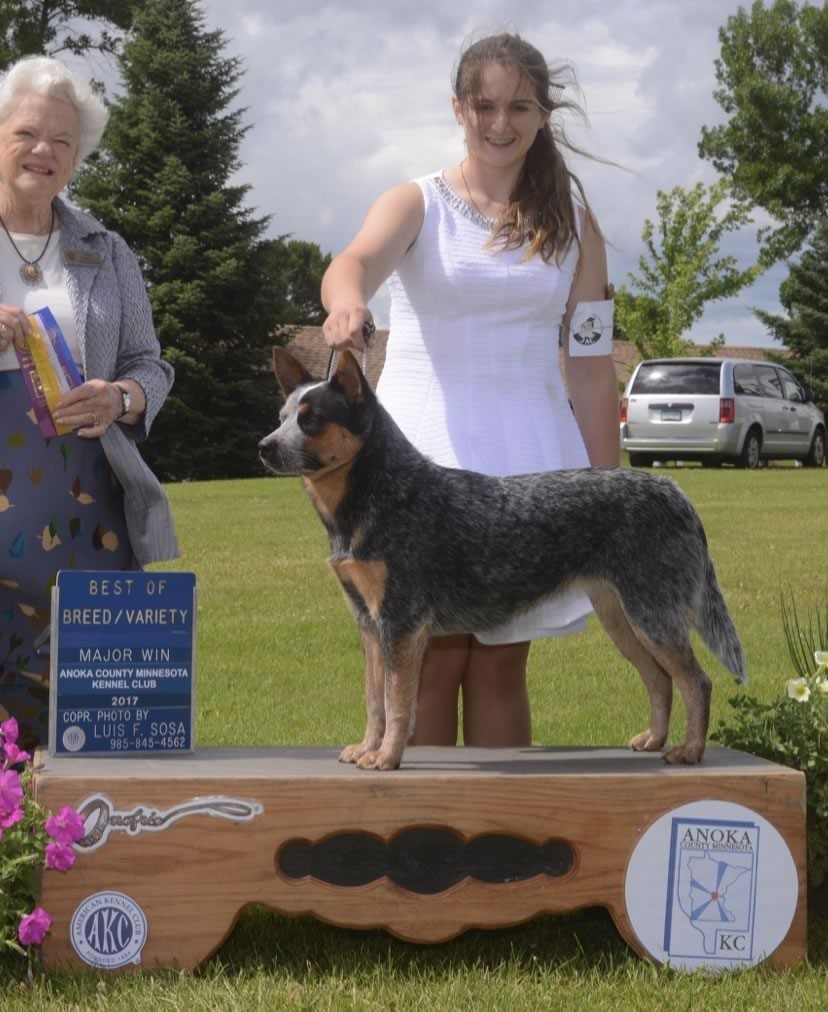Fame was bred by Royal ACD’s. His sire was imported from Italy by way of Australia. His grandsire was the #1 herding dog in Italy. The drive runs strong in this male and we are very proud of him. Fame was handled by Jesus Moreno and completed his AKC championship in three weekends.
